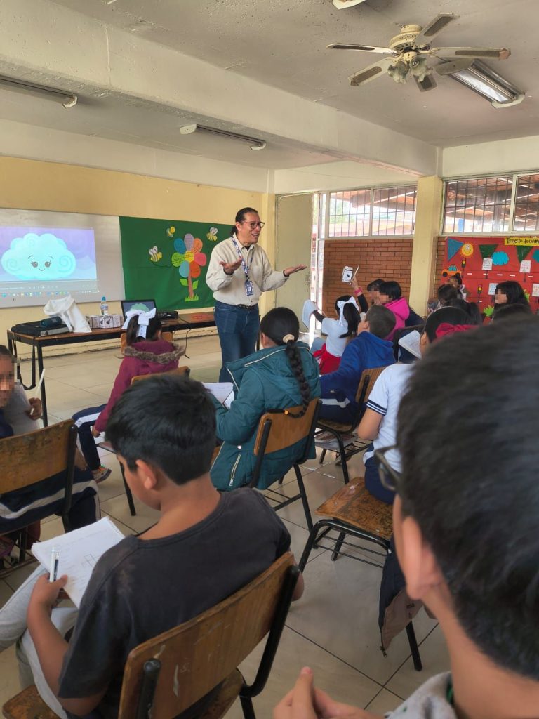 En esta ocasión, se visitó la escuela vespertina “Manuel José Othón” en la cabecera municipal de Soledad de Graciano Sánchez, donde se abordaron temas como la huella hídrica y el agua virtual, a través de ejemplos prácticos que permitieron a las y los estudiantes identificar la cantidad de agua que se utiliza en la producción de bienes de uso cotidiano, así como reflexionar sobre la importancia de los hábitos de consumo.