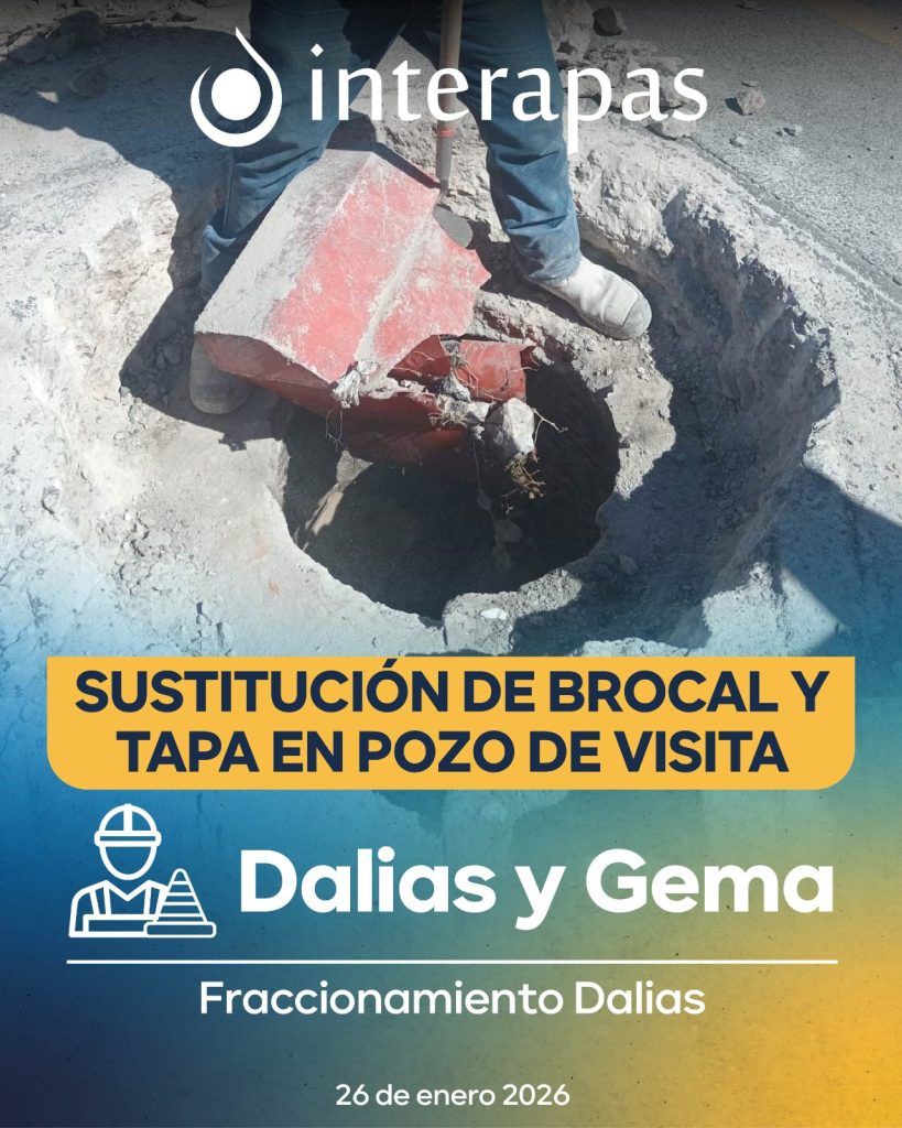 INTERAPAS mantiene acciones permanentes para conservar en buen estado la red sanitaria y brindar mayor seguridad a los usuarios. Para reportar tapas dañadas o faltantes, los usuarios pueden reportar a la línea FUGACERO 4443018874 o en las redes sociales del organismo.