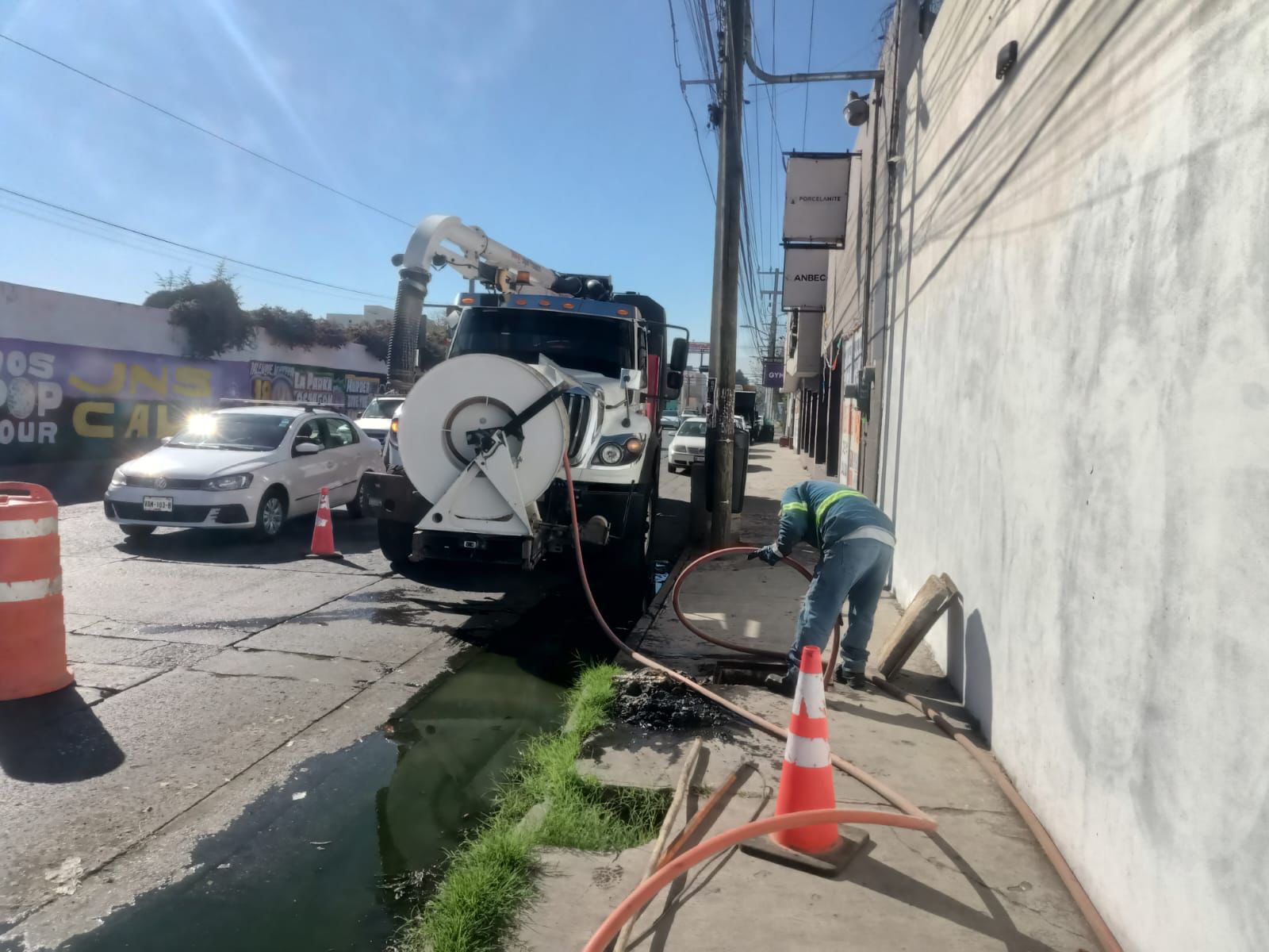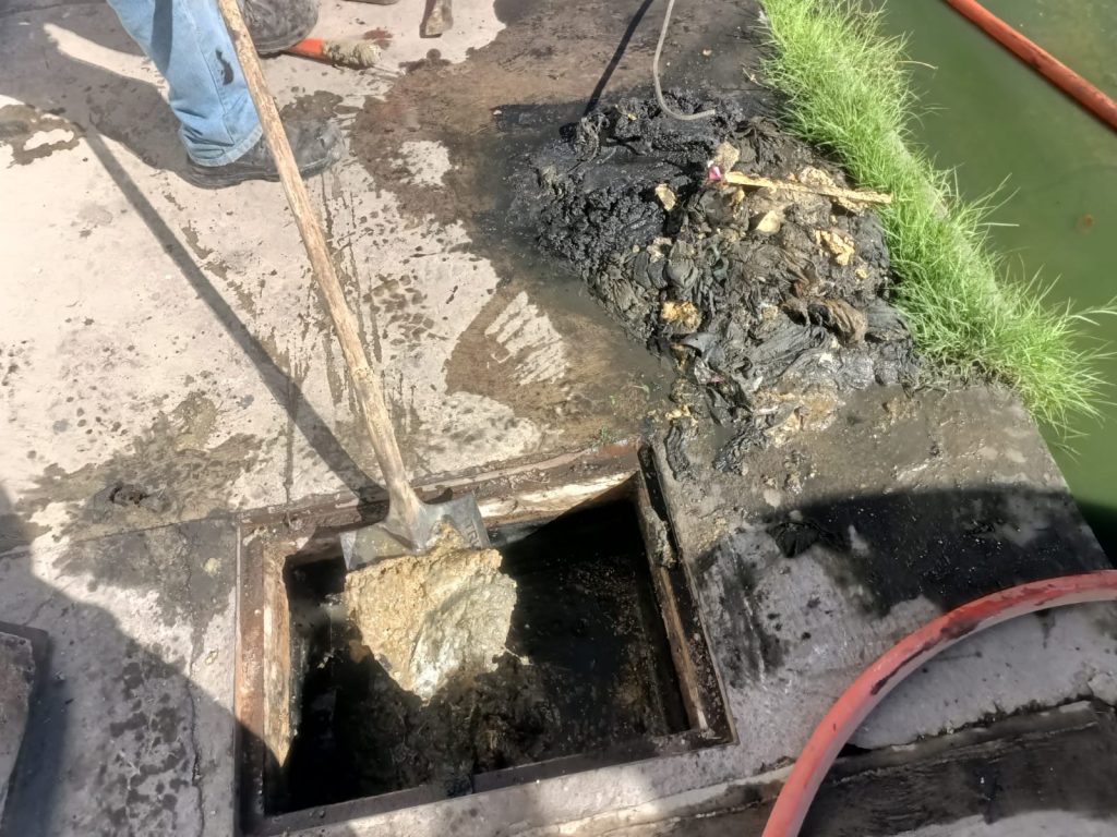 Con apoyo de camión hidroneumático se llevaron a cabo trabajos de limpieza y sondeo en la descarga afectada, logrando que la línea quedara nuevamente en funcionamiento y bajaran los niveles en el registro.