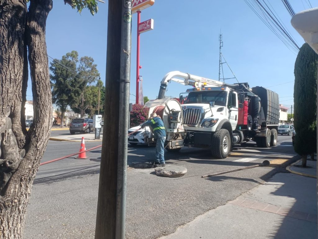 SLP.- INTERAPAS atendió un reporte por fuga de aguas residuales en la esquina de Sebastián Elcano y Prolongación Muñoz, donde personal operativo realizó un reconocimiento de la zona para identificar el origen del problema.