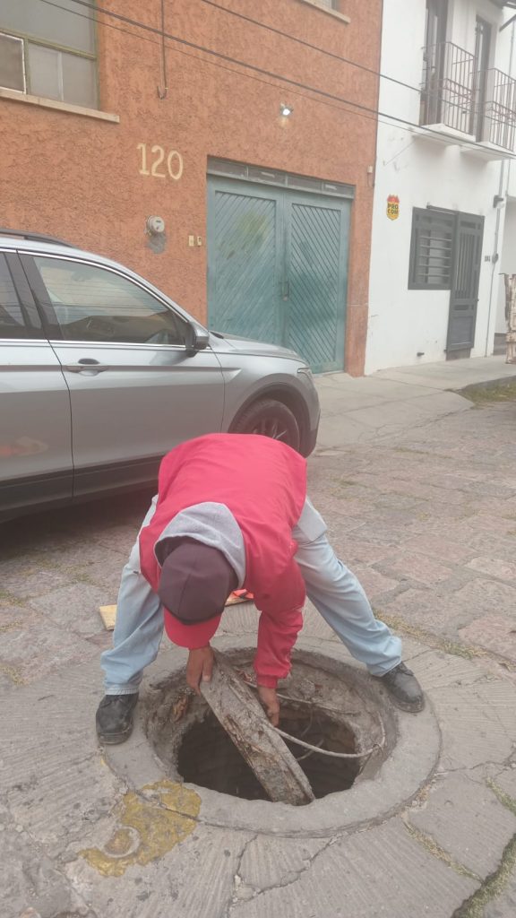SLP.– INTERAPAS mantiene trabajos constantes de mantenimiento y mejora en la infraestructura sanitaria, mediante la reposición de tapas y brocales en pozos de visita, acciones que contribuyen a la seguridad vial y al buen funcionamiento del drenaje, especialmente de cara a la próxima temporada de lluvias.
