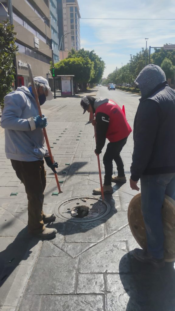 En días recientes, en el barrio de Tequisquiapan se renovó la estructura de un pozo de visita y su tapa en Primera Privada de Anáhuac; además, en el cruce de Venustiano Carranza y Benigno Arriaga, una de las vialidades más importantes de la ciudad, se colocó una nueva tapa para mejorar las condiciones de movilidad en la zona.